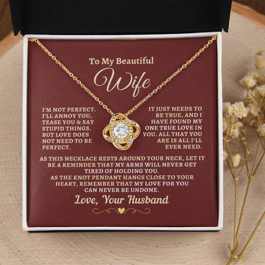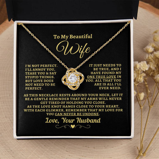 Gift For Wife: "Not Perfect - My One True Love" Knot Necklace