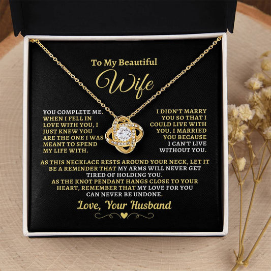 H2W-N14 - Gift For Wife :"Can't Live Without You - Your Last Everything" Knot Necklace