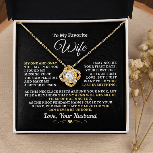 Gift For Wife: "Favorite Wife - Your Last Everything" Knot Necklace