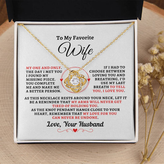 Gift For Wife: "Favorite Wife - My Last Breath" Knot Necklace