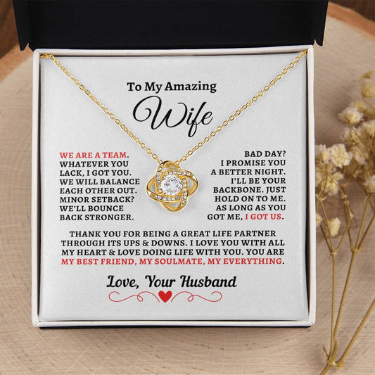 H2W-N08 - Gift For Wife: "We're A Team - Thank You" Knot Necklace