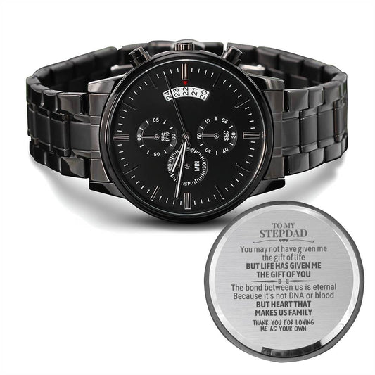 To My Stepdad - "Heart Makes Us Family" Engraved Mens Luxury Chronograph Watch